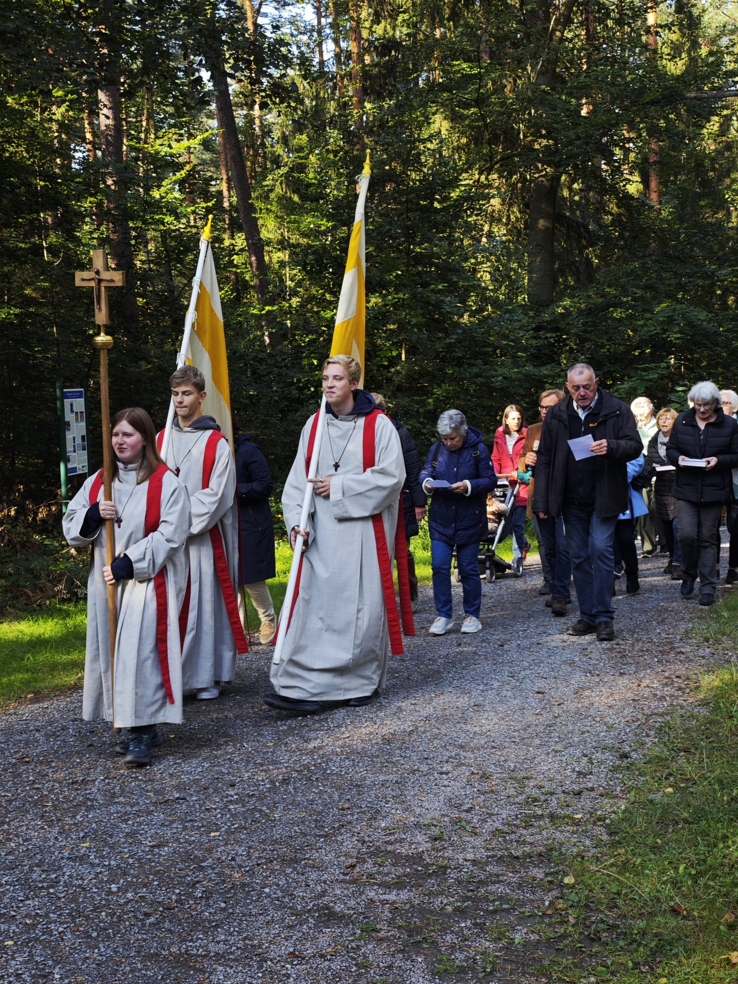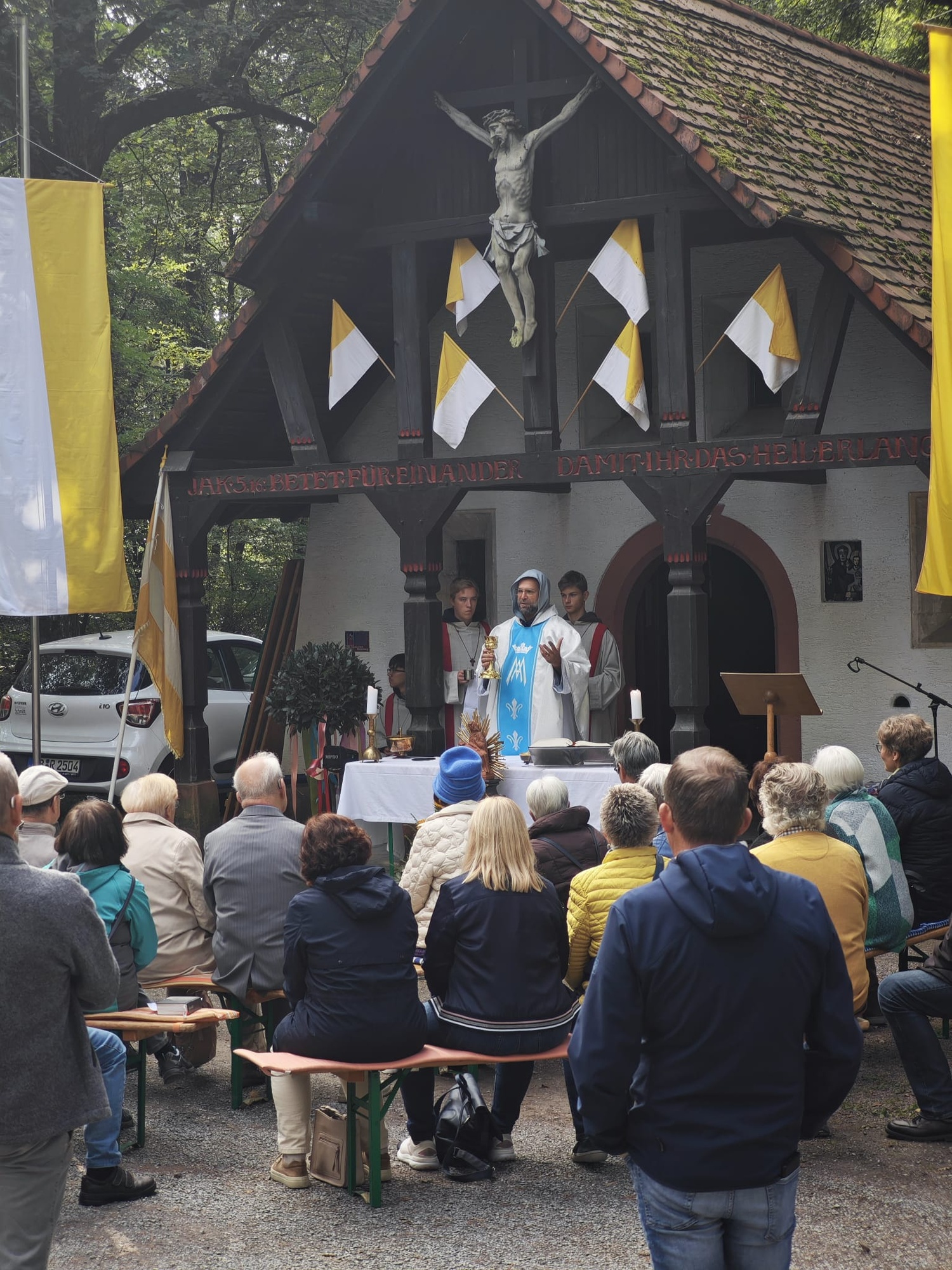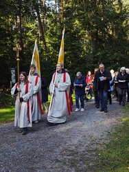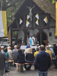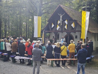 Schon seit über 300 Jahren gibt es den ältesten Teil der Obernauer Kapelle, in dem die Mutter Gottes steht und verehrt wird. Jedes Jahr wird im Mai und September, wird auf dieser schönen Waldlichtung das Kapellenfest gefeiert. Dieses Jahr gab es erstmals nach Corona, wieder eine Prozession von der Mehrzweckhalle aus, welche Artur Eck gestaltete. Über 80 Gläubige versammelten sich, bei schönstem Sonnenschein, nach und nach an der Kapelle, um gemeinsam mit Br. Nicola und der musikalischen Begleitung der Melomania Obernau die Messe zu feiern und Maria Schmerzen zu gedenken.