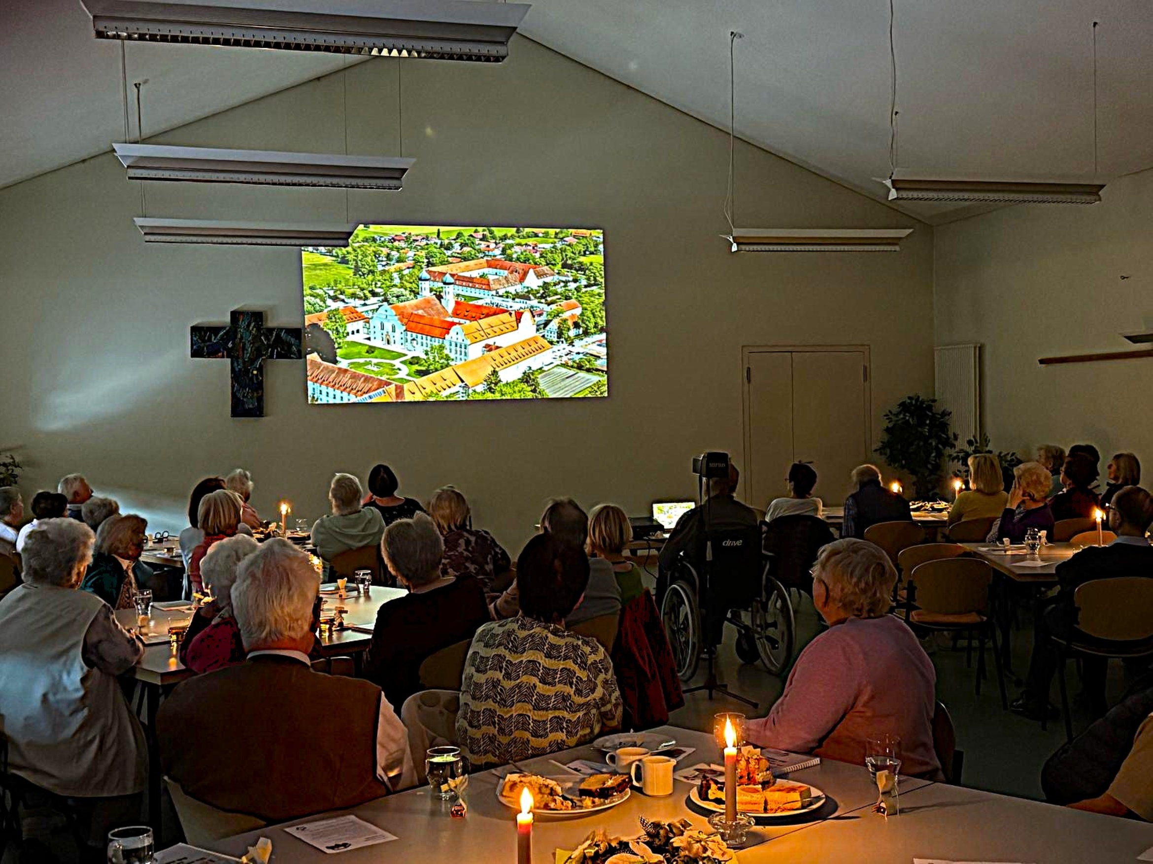 Am 09.04.25 fand im Pfarrsaal zum zweiten Mal eine Multivisionshow statt, diesmal mit dem Thema „Südbayerns Schlösser, Klöster und Kirchen“. Das Seniorenteam reichte zuerst Kaffee und Kuchen und anschließend begann Herr Ebert mit dem Event. Herr Ebert kommt aus Klingenberg und war in der ganzen Welt unterwegs, um von den schönsten Fleckchen der Erde Bilder zu sammeln. Diese bearbeitete er dann und stellte sie zu kleinen Filmen zusammen. Dieses Jahr konnten sich die Senioren über Südbayerns Schlösser, Klöster und Kirchen freuen. Von ganz Südbayern wurden die einzelnen Sehenswürdigkeiten vorgestellt. Da viele Bilder auch mit einer Drohne aufgenommen wurden, waren es wirklich atemberaubende Aufnahmen, die man vom Boden aus gar nicht so erleben würde. Ob es das Kloster Ettal, Kloster Weltenburg, Kloster Benediktbeuern oder die berühmten Schlösser wie Herrenchiemsee, Schloss Linderhof oder Schloss Hohenschwangau waren. Und natürlich das berühmteste Schloss Neuschwanstein durfte nicht fehlen. Durch die Musik zu der Bildershow konnte man ins Träumen kommen und die Reiselust wurde bestimmt bei dem ein oder anderen geweckt. Nach der Show hatten die Senioren noch genügend Zeit über die Eindrücke zu reden und eigene Erinnerungen auszutauschen. Es war wieder ein sehr schöner Nachmittag.